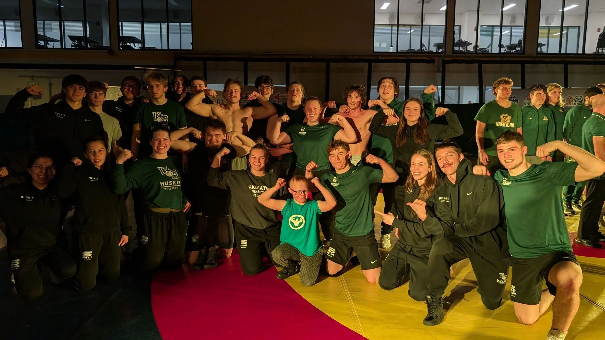 Jac’s passion for wrestling has been growing ever since he joined the Down to Wrestle program, but his excitement reached a whole new level after watching the University of Saskatchewan Huskies in action. So inspired by their skill and determination, Jac convinced his parents, Francis and Meaghan, to make the trip to Edmonton just to cheer on the Green and White. As they settled into the stands, Jac’s enthusiasm was impossible to miss—his cheers echoing through the arena as he watched his wrestling heroes take to the mat.
